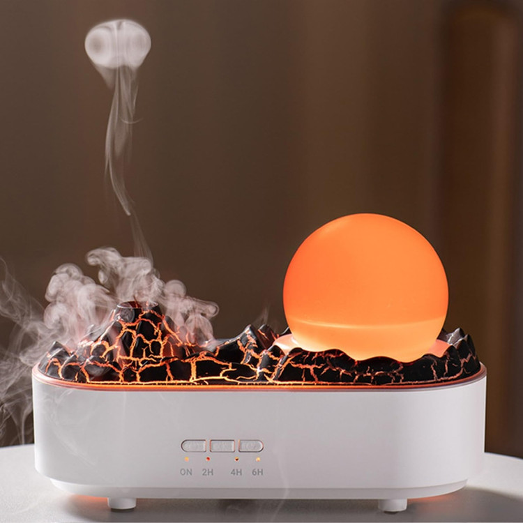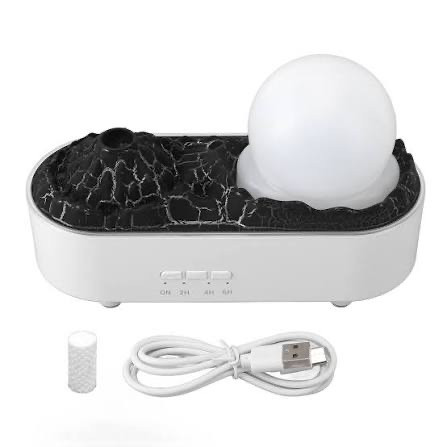 این بخور سرد اولتراسونیک با طراحی خاص کوه آتشفشان و گوی نورانی، جلوهای آرامشبخش ایجاد میکند و با بخار ملایم خود به بهبود کیفیت هوا کمک میکند.