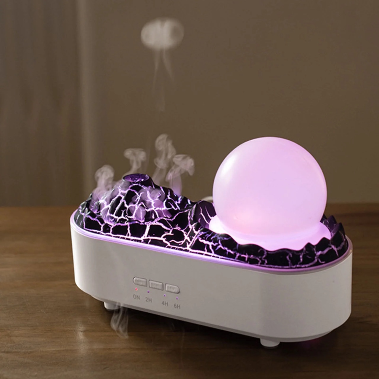 این بخور سرد اولتراسونیک با طراحی خاص کوه آتشفشان و گوی نورانی، جلوهای آرامشبخش ایجاد میکند و با بخار ملایم خود به بهبود کیفیت هوا کمک میکند.